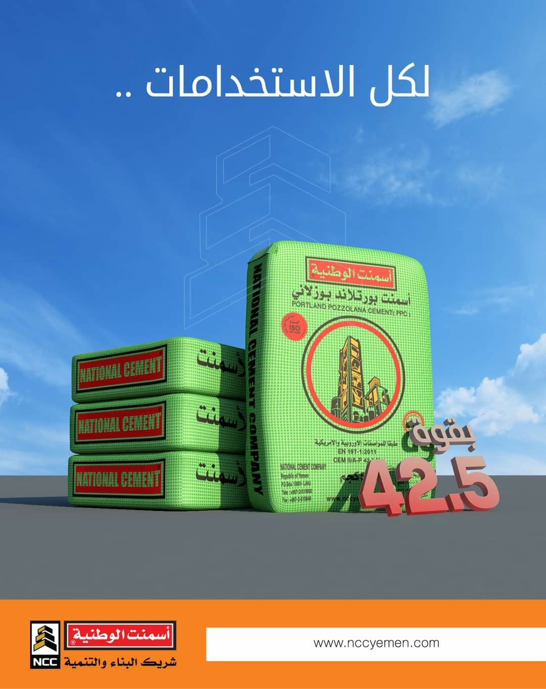 أسمنت الوطنية البورتلاندي البوزلاني : يتم إنتاجه طبقا للمواصفات ACCORDING TO STANDARD
