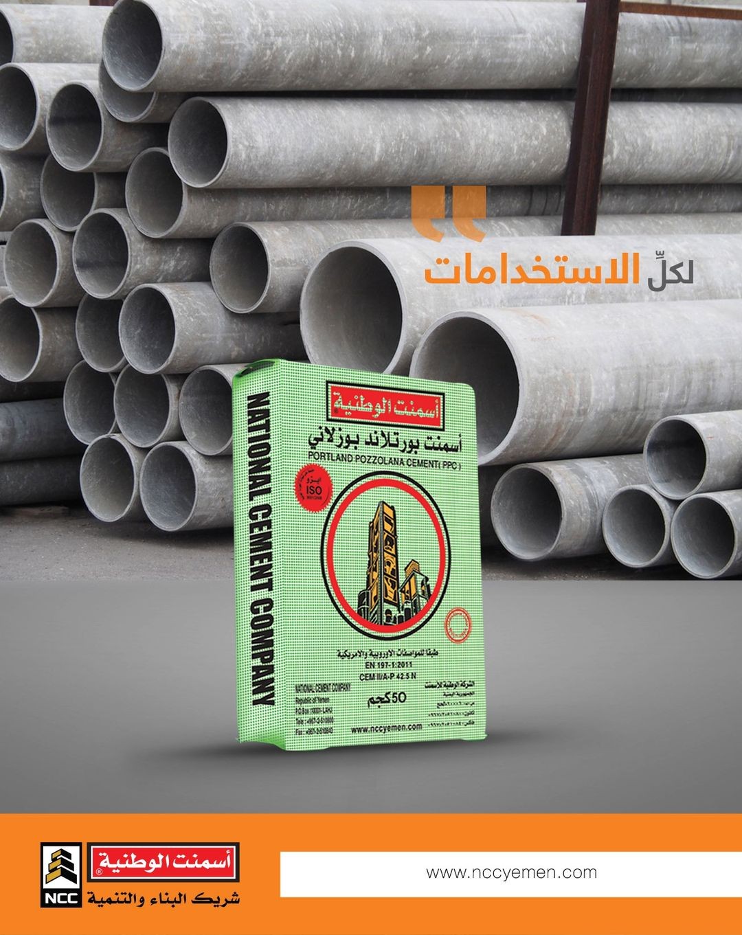 أسمنت الوطنية البورتلاندي البوزلاني : يتم إنتاجه طبقا للمواصفات ACCORDING TO STANDARD